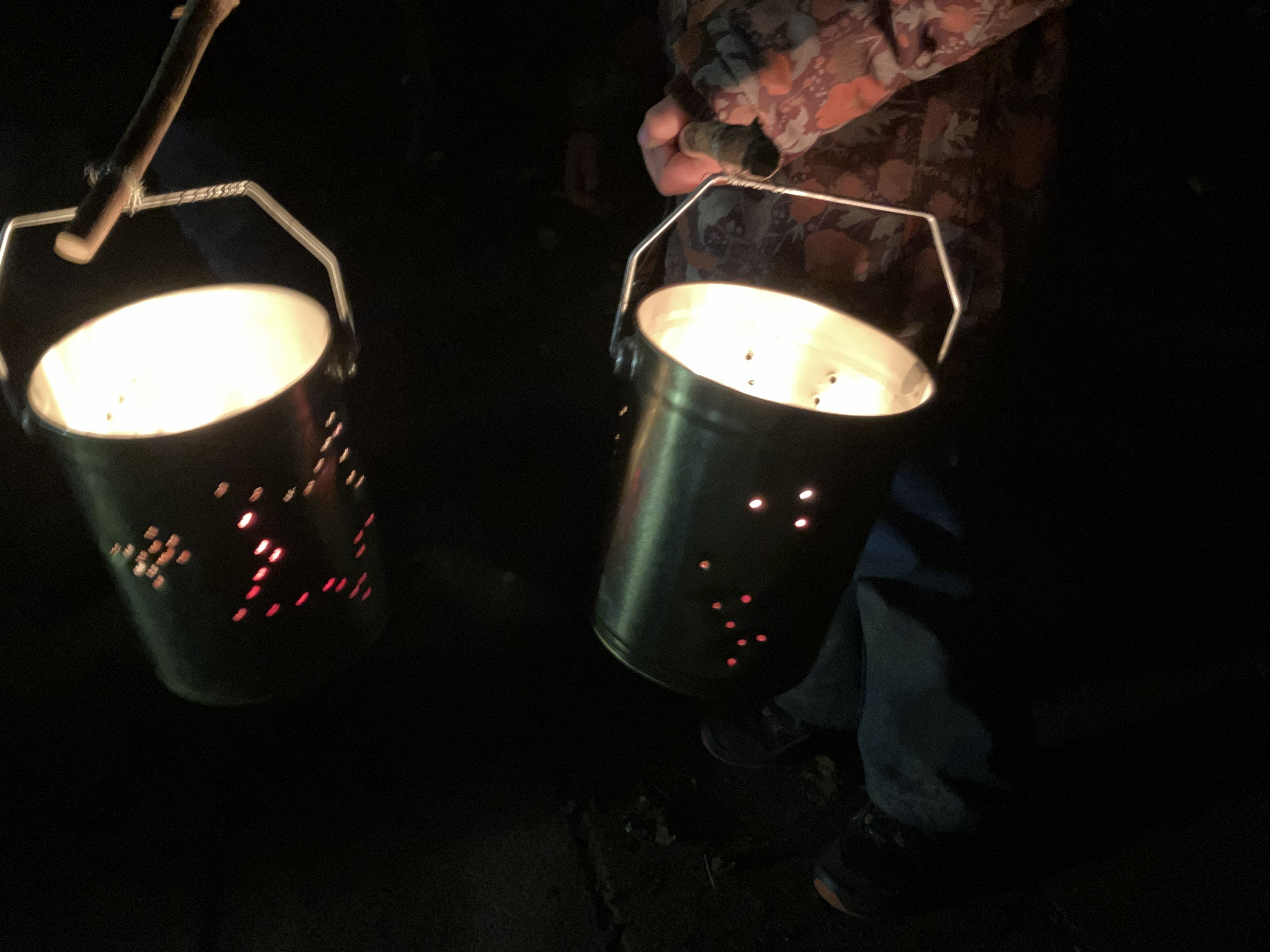 Normalerweise ist es an einem Freitagabend einsam und still um unser Monte-Schloss herum. Eine Katze streift durch die Wiesen, man hört etwas im Laub rascheln und der Nebel senkt sich über die Kulisse. Doch nicht so am 14.11. Schon bei Dunkelheitseinbruch leuchteten kleine warme Kerzen, warfen Lichterketten ihren Schimmer in die Schwärze und man hörte Kinderlachen und beruhigendes Gemurmel vieler Stimmen. Ein Feuer loderte im Pausenhof auf, die Gitarren wurden gestimmt, der Grill angeworfen und es bildete sich ein großer Kreis ums Feuer. Die Fuchs- und Maulwurfkinder hatten sich mit ihren Eltern, Omas, Opas, Verwandten und Lehrer*innen eingefunden, um gemeinsam beisammen zu sein. Wir sangen viele Lieder und zogen mit unseren Laternen durch die dunklen Felder. Kein Magen blieb bei den süßen sowie deftigen Köstlichkeiten hungrig. Bei warmem Kinderpunsch konnte sich der Ein oder Andere kennen lernen und gute Gespräche fanden statt, für die im Alltag manchmal wenig Zeit bleibt. Es war ein ganz besonderer Abend!